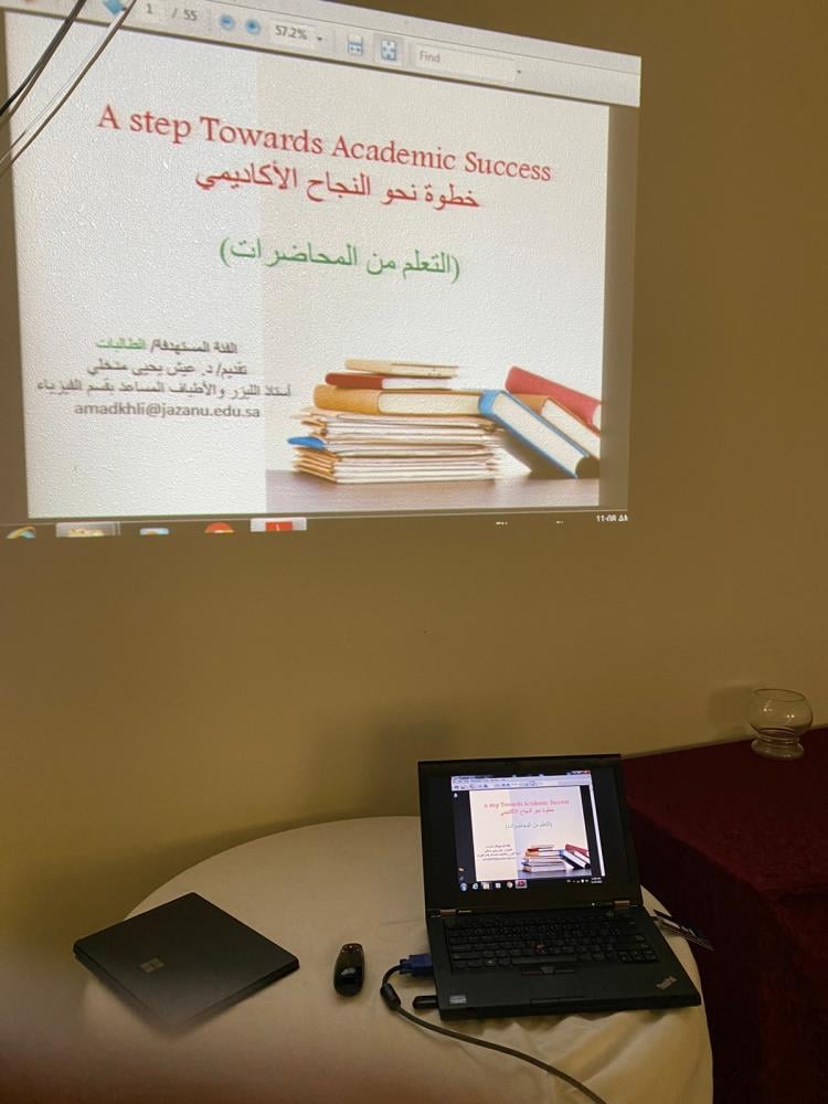 قدمتها مساعد رئيس قسم الفيزياء بكلية العلوم ـ جامعة جازان الدكتورة يحيى عيش مدخلي في قاعة التدريب بالكلية مستهدفة هيئة أعضاء التدريس والطالبات بجميع الأقسام بواقع ساعة ونصف وحضور 25 متدربة.