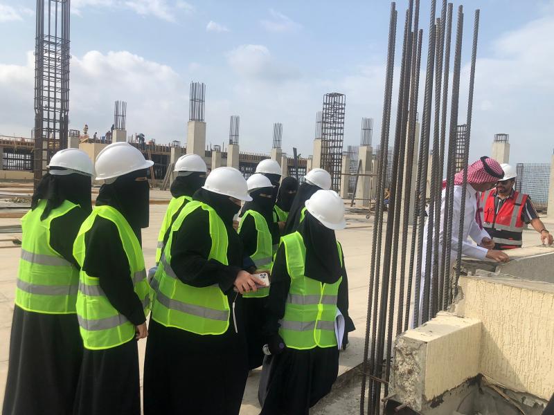 المهندس المدني أصيل عوض وفريق من مهندسي الإدارة الهندسية بالجامعة قاموا بالتعريف بالمباني وعمل زيارة داخل مباني المستشفى الجامعي تحت الإنشاء وشرح المراحل المتبقية وكذلك الإجابة على كافة الأسئلة التي تم توجيهها من قبل الطالبات إضافة إلى زياره المباني الخاصة بكلية الطب تحت التشطيبات والتعرف على كافة التشطيبات من أنظمة التكييف وأنظمة الحريق وأعمال اللياسة والتكسيات والبلاط .