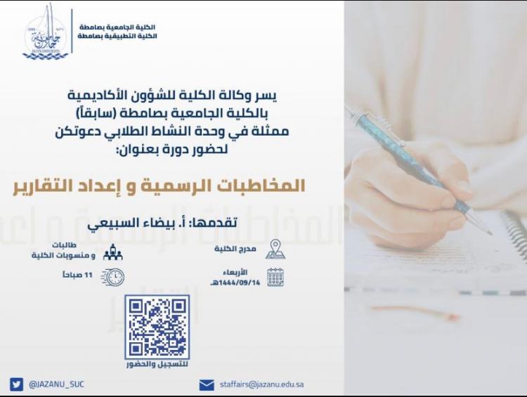 إعداد التقارير والخطابات الرسمية بالكلية التطبيقية بصامطة