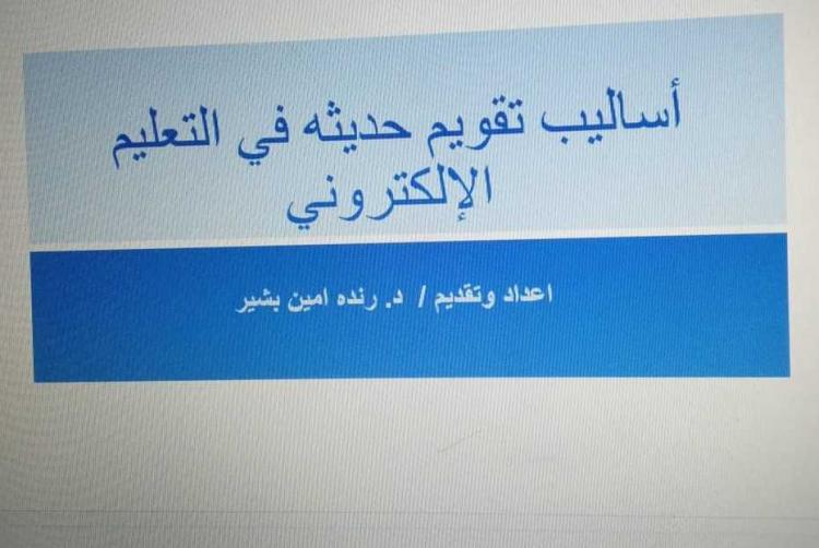 نفذت الورشة التدريبية د. رندة أمين عضوة هيئة التدريس بقسم التمريض بالكلية تناولت فيها مفهوم التقويم الالكتروني وآخر تطوراته العلمية والبحثية وما توصل إليه من أساليب حديثة حيث عرفت مفهوم التقويم الالكتروني بأنه التقويم المعتمد على أجهزة الكمبيوتر بمساعدة أدوات وبرامج مختلفة تقوم بتقييم أداء الطالب ومستواه التعليمي بدقة عالية. فهي طريقة مبتكرة تتميز بالسهولة والسرعة وقلة استهلاك الجهد البدني والمادي. وتطرقت إلى استخدامات التقويم الالكتروني وتنوعاته، مثل التقويم التربوي والصحي والنفسي، ثم تحدثت عن أهميته وضرورة الإحاطة بأساليبه ومهاراته الحديثة موردة في ورشتها التدريبية أساليب التقويم وأهم مميزاته وأدواته وطرق التعامل معه وشرحت طرق تنفيذ التقويم الالكتروني من خلال أدواته وبرامجه المتعددة.