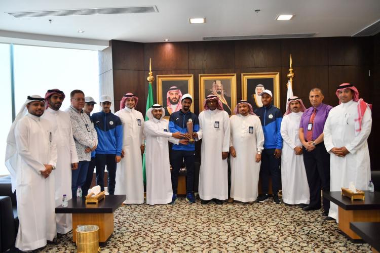 التقى سعادة رئيس الجامعة المكلف الأستاذ الدكتور محمد بن حسن أبو راسين بمكتبه اليوم منتخب الجامعة لكرة القدم والذي حصد الميداليات البرونزية وكأس المركز الثالث لدوري كرة القدم للجامعات مستوى (أ) ضمن بطولة الاتحاد الرياضي للجامعات السعودية بحضور عميد شؤون الطلاب الدكتور يحيى فقيهي.