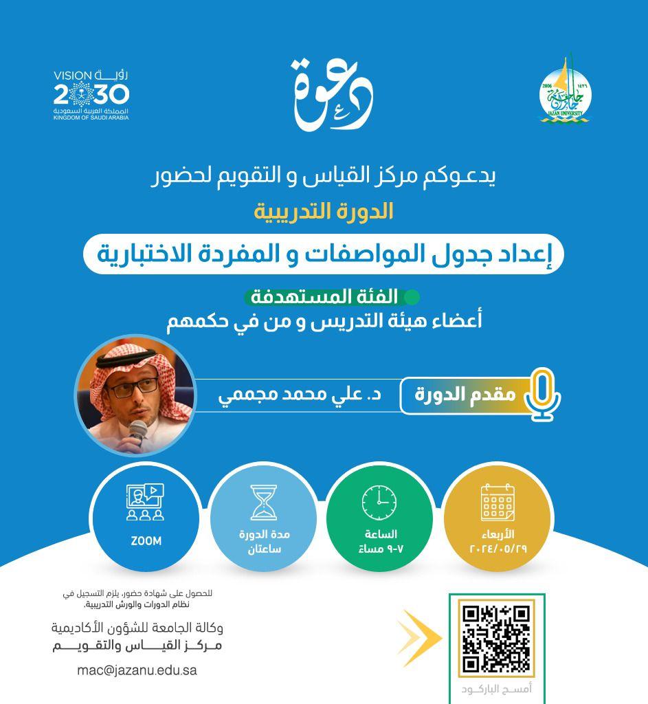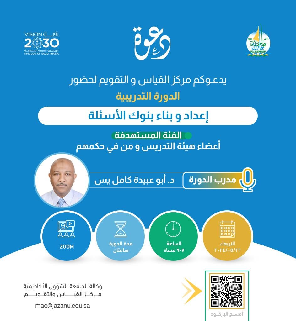 وتأتي هذه الدورات التدريبية بإشراف وكالة الجامعة للشؤون الأكاديمية وتناولت مواضيع إعداد وبناء بنوك الأسئلة قدمها الدكتور أبو عبيدة ياسين، وإعداد جدول المواصفات والمفردة الاختبارية قدمها الدكتور علي مجممي.
