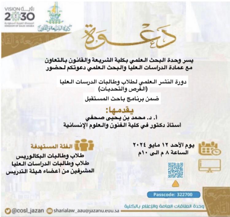 دورة النشر العلمي لطلبة الدراسات العليا بكلية الشريعة والقانون