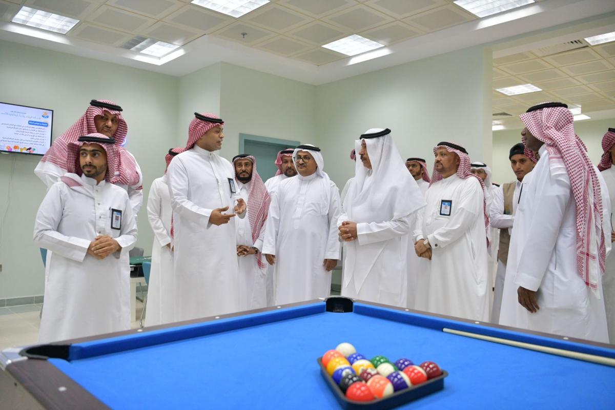 وتجول معالي الرئيس ووكلاء الجامعة في أركان المعرض واستمع إلى شرح من الطلاب عن الأقسام والأهداف ومجالات التوظيف، إضافة إلى استماعهم لشرح عن دورة أساسيات استخدام البلاك بورد؛ وأهميته في مسيرة الطالب الجامعي كما التقى بطلاب المجلس الاستشاري والذي يجيب على استفسارات الطلاب المختلفة. كما دشن معاليه الصالة الرياضية بالكلية والتي تضمنت العديد من الألعاب الرياضية والترفيهية والتفاعلية بإشراف وحدة الأنشطة الطلابية.