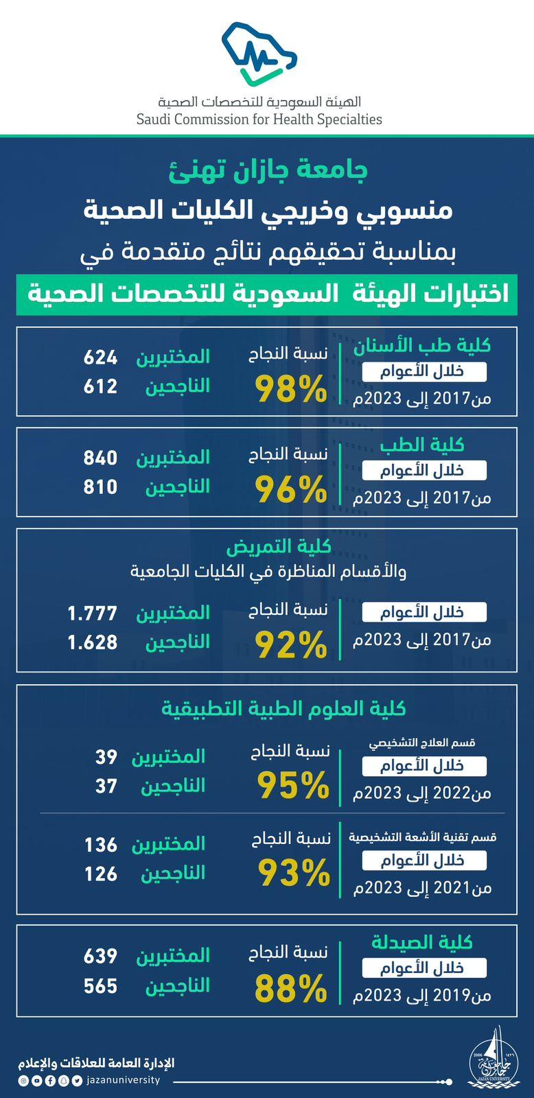 طلبة جامعة جازان يحققون مراكز متقدمة في اختبارات "المهن الصحية"