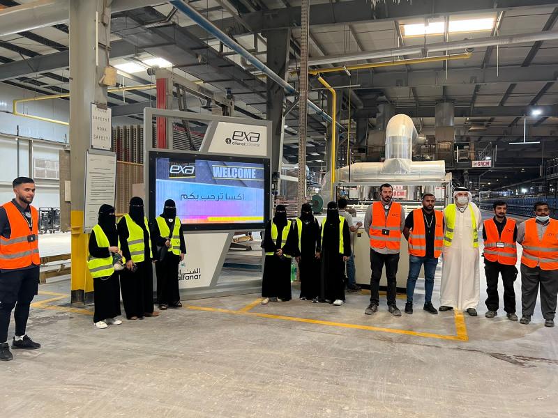 من جانبه قام وفد من طالبات الكلية بزيارة مصنع الفنار للسيراميك و البورسلان - اكسا وتم التعرف على مجال العمل وأقسام المصنع.