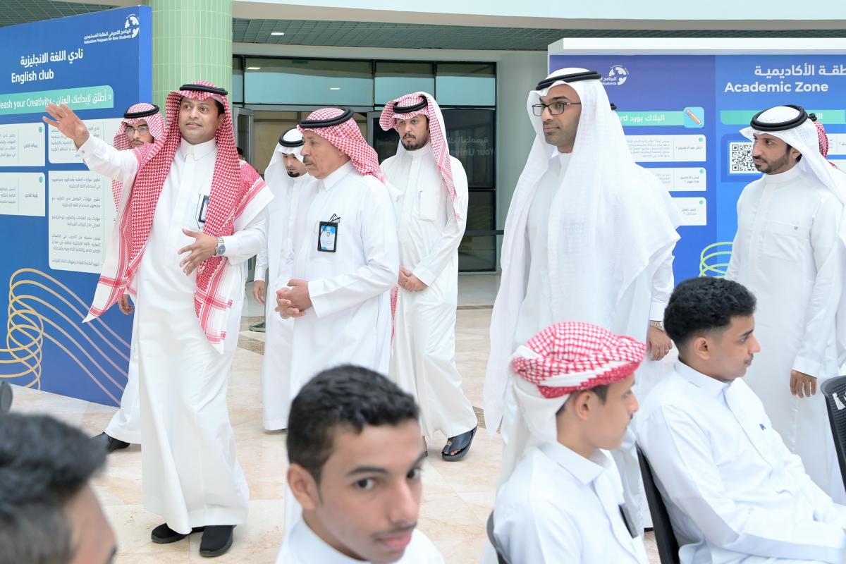 كما اطلع معاليه على البرنامج التعريفي والبرنامج المصاحب للطلبة المستجدين المقام بكليتي الحاسب والهندسة والذي تنظمه عمادة شؤون الطلاب حيث دشن المعرض الإرشادي الذي يتضمن تعريفًا باللوائح والأنظمة والتقويم الجامعي، والمهارات الناعمة والتقنية في الحياة الجامعية، موجهًا بتكثيف البرامج الإرشادية والتوجيهية التي تساعد على تهيئة الطلاب والطالبات للتكيف مع الحياة الجامعية الجديدة؛ متمنياً لهم عاماً جامعيًا موفقاً.