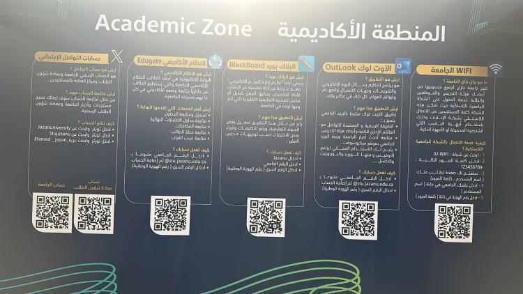 وقدمت عمادة شؤون الطلاب شطر الطالبات معلومات إرشادية وتعريفية للعمادة، وضحت رؤيتها ورسالتها وأهدافها وتعريف الطالبات بأنظمة الجامعة وبرامجها المتنوعة والحركات الأكاديمية.