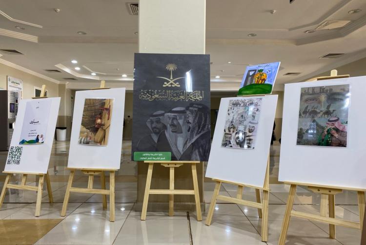 وقد اشتمل المعرض الذي قدمته الطالبة نورة غزواني على لوح فنية تسطر الملحمة التاريخية والوطنية التي قادها الملك عبدالعزيز رحمه الله والإنجازات العظيمة التي شهدها المواطن والمقيم والزائر في ظل خادم الحرمين الشريفين وولي عهده الأمين من مشاريع الخير والنماء كما تضمن المعرض فعاليات متنوعة ما بين قصائد وطنية بثت روح الوطنية والولاء بين الطالبات فيما شارك الحضور بكلمات الحب الصادق بصور أو تصميم بوسترات.