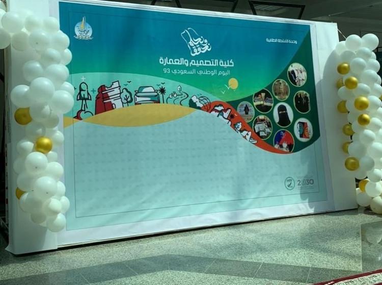 برعاية وكيلة الجامعة لشؤون الطالبات د. فاطمة بنت عبد العزيز عقيلي احتفت كلية التصميم و العمارة ممثلة بوحدة النشاط الطلابي وإشراف رئيسة الوحدة د. فادية هشام بمناسبة ذكرى اليوم الوطني الثالث والتسعين بحضور عميدة الكلية أ.د فاطمة الشيخ والوكيلات وجميع منسوبات الكلية ببهو المجمع الأكاديمي بمحلية.