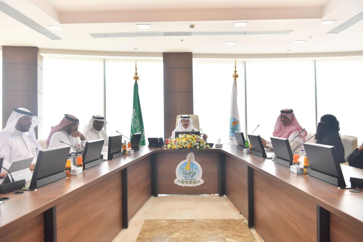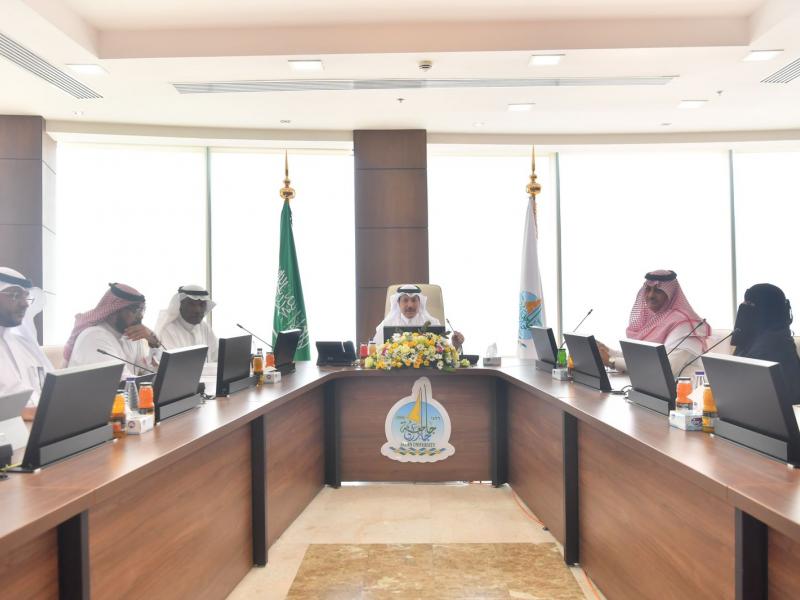 رأس معالي رئيس جامعة جازان الأستاذ الدكتور مرعي بن حسين القحطاني مجلس الجامعة في جلسته الأولى للعام الجامعي ١٤٤٥ في قاعة مجلس الجامعة بالبرج الإداري للجامعة بحضور سعادة الدكتور بسام بن عبدالله حمد البسام الأمين العام لشؤون مجلس الجامعات وأصحاب السعادة وكلاء الجامعة وعمداء وعميدات الكليات و العمادات المساندة.