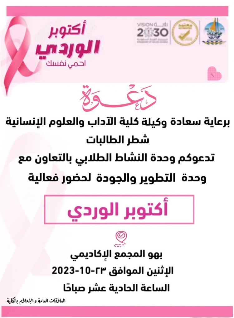 كلية الآداب والعلوم الإنسانية شطر الطالبات تحتفي بشهر أكتوبر الوردي
