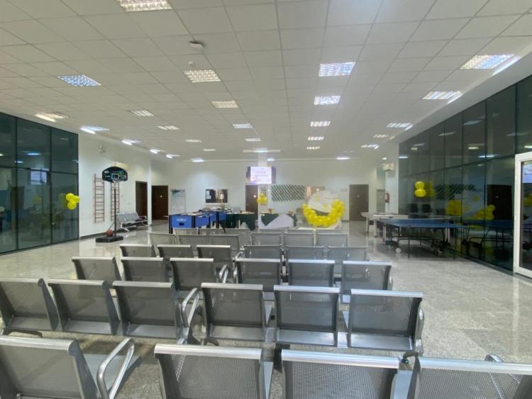 وقد تم تهيئة جميع الإمكانات الترفيهية المتوفرة في الصالة الرياضية ونقلها لصالة الكلية لخلق جو جديد يعطي المزيد من الاستمتاع، كما تم استضافتهم بالكلمات الترحيبية والأناشيد وفيسات الابتسامة الملصقة في كل أرجاء الصالة والعبارات الإيجابية المعززة.