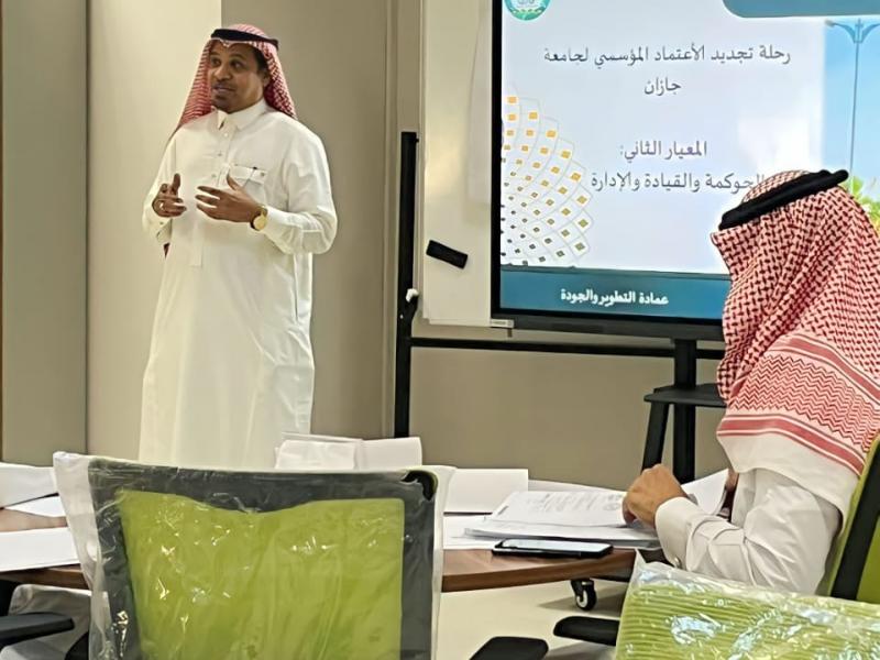 تحدثت عن رحلة تجديد الاعتماد المؤسسي لجامعة جازان، ثم بينت ما هو الاعتماد وهو الذي أقرتهُ هيئة تقويم التعليم والتدريب، ثم تناولت مسار الاعتماد المؤسسي الذي يبدأ من "1"اكتوبر ٢٠١٨ م، وينتهي " 30"سبتمبر ٢٠٢٥م. وكذلك تحدثت عن عدد معايير الاعتماد المؤسسي المحدثة، و تناولت آلية العمل، واختيار الجهات منها تحديد المالك وتسكين المعايير وتحديد الأفراد، ومهام رئيس لجنة المعيار، و مهام اللجان الفرعية ، وكذلك توزيع المستشارين والإداريين، وبينت مهام المستشار، ومهام الإداري، ثم أوضحت مصفوفة الأدلة الخاصة بالمعيار الثاني، و شواهد وأدلة المحكات، وبعض المحكات ومقترح الأدلة والشواهد، وبينت الإطار الزمني للاعتماد المؤسسي، وآلية التواصل ،ومقترح بخطة العمل، و تناولت آلية توثيق المتطلبات ، وتوثيق الأدلة والشواهد، والاجتماعات، اختتمت الورشة بمناقشة بعض التساؤلات التي طرحت وتم الرد عليها أثناء ذلك .