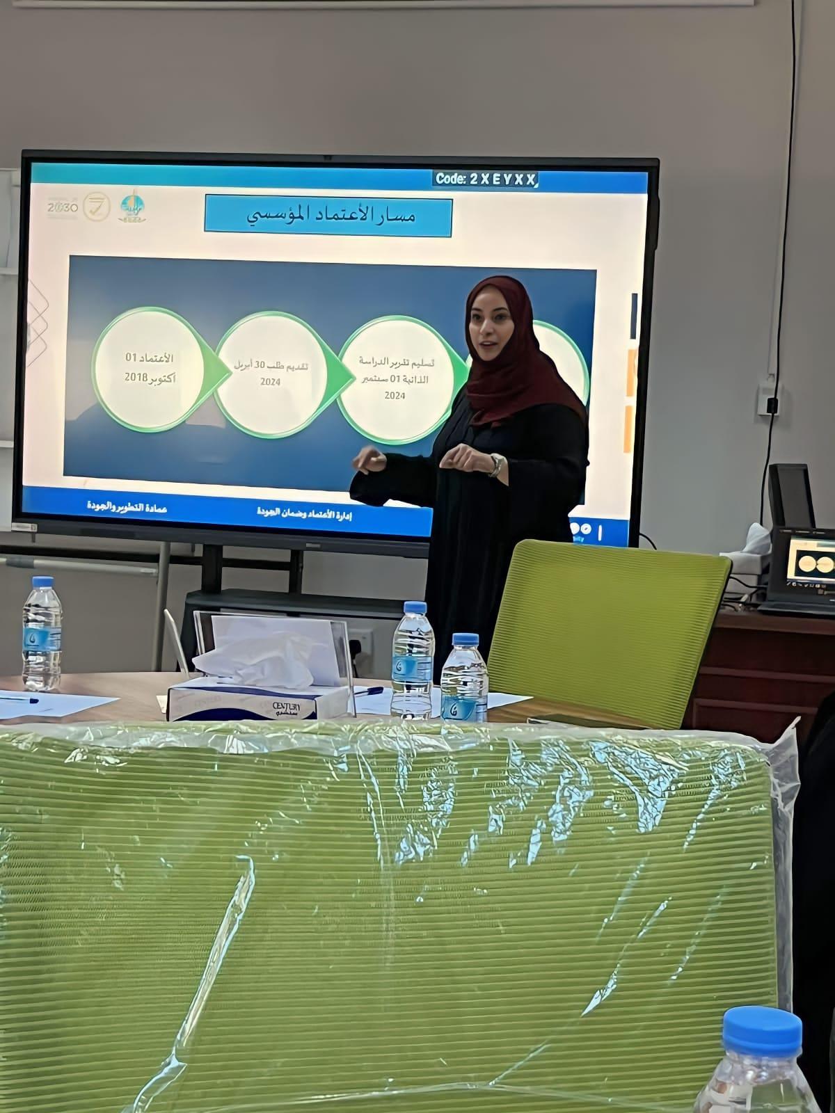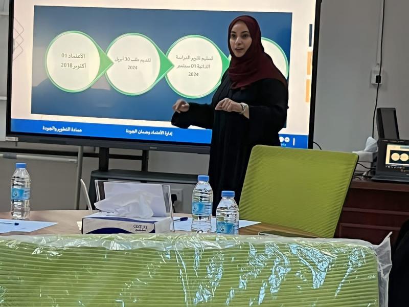 كما تحدثت عن عدد معايير الاعتماد المؤسسي المحدثة، و تناولت آلية العمل، واختيار الجهات منها تحديد المالك وتسكين المعايير وتحديد الأفراد، ومهام رئيس لجنة المعيار، ومهام اللجان الفرعية، وتوزيع المستشارين والإداريين، وبينت مهام المستشار ومهام الإداري، ثم أوضحت مصفوفة الأدلة الخاصة بالمعيار الأول و شواهد وأدلة المحكات، وبعض المحكات ومقترح الأدلة والشواهد، وبينت الإطار الزمني للاعتماد المؤسسي، وآلية التواصل ومقترح بخطة العمل وآلية توثيق المتطلبات، وتوثيق الأدلة والشواهد، والاجتماعات.