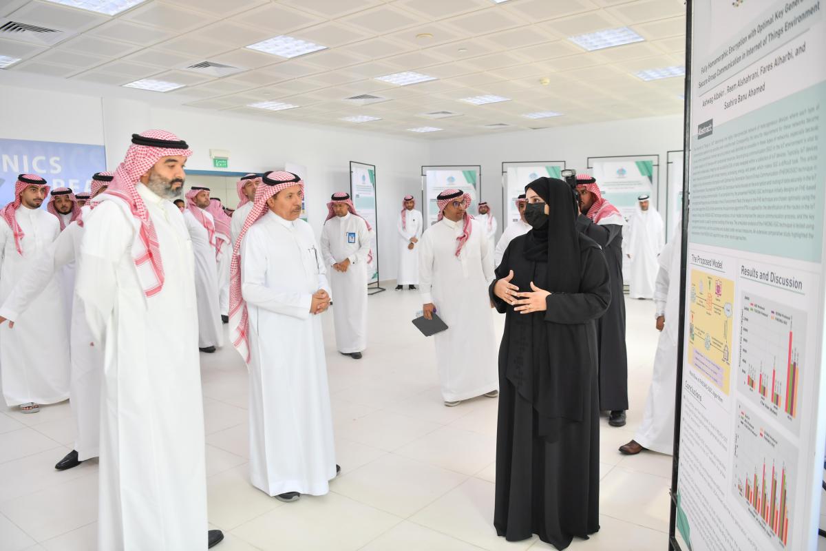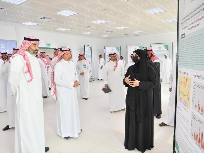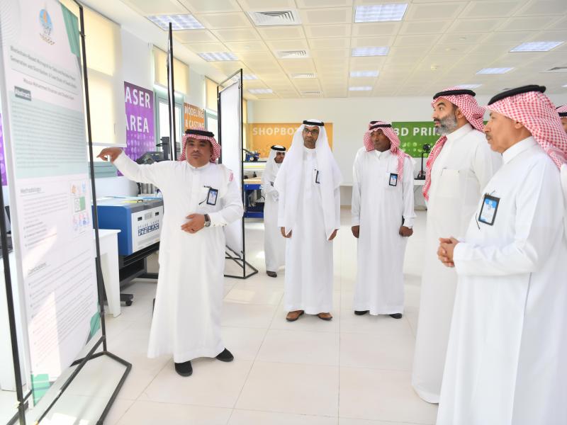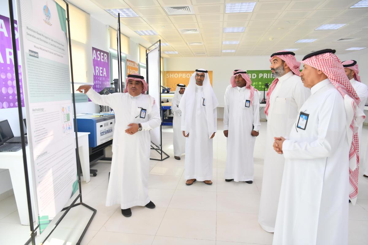 وأكد معاليه على التعاون مع الجامعة في الجانب البحثي والابتكاري وتبني الأبحاث التي ترتبط بالأولويات الوطنية وذلك خلال اطلاعه على معرض المشاريع البحثية بمعمل الفاب لاب؛ حيث استمع لشرح من أعضاء هيئة التدريس والباحثين عن الأبحاث العلمية المتنوعة.