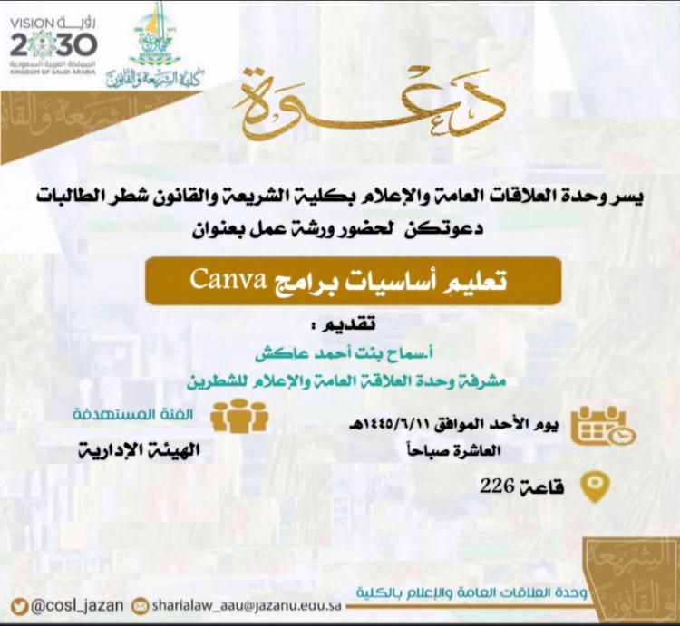 أساسيات برنامج canva بكلية الشريعة والقانون