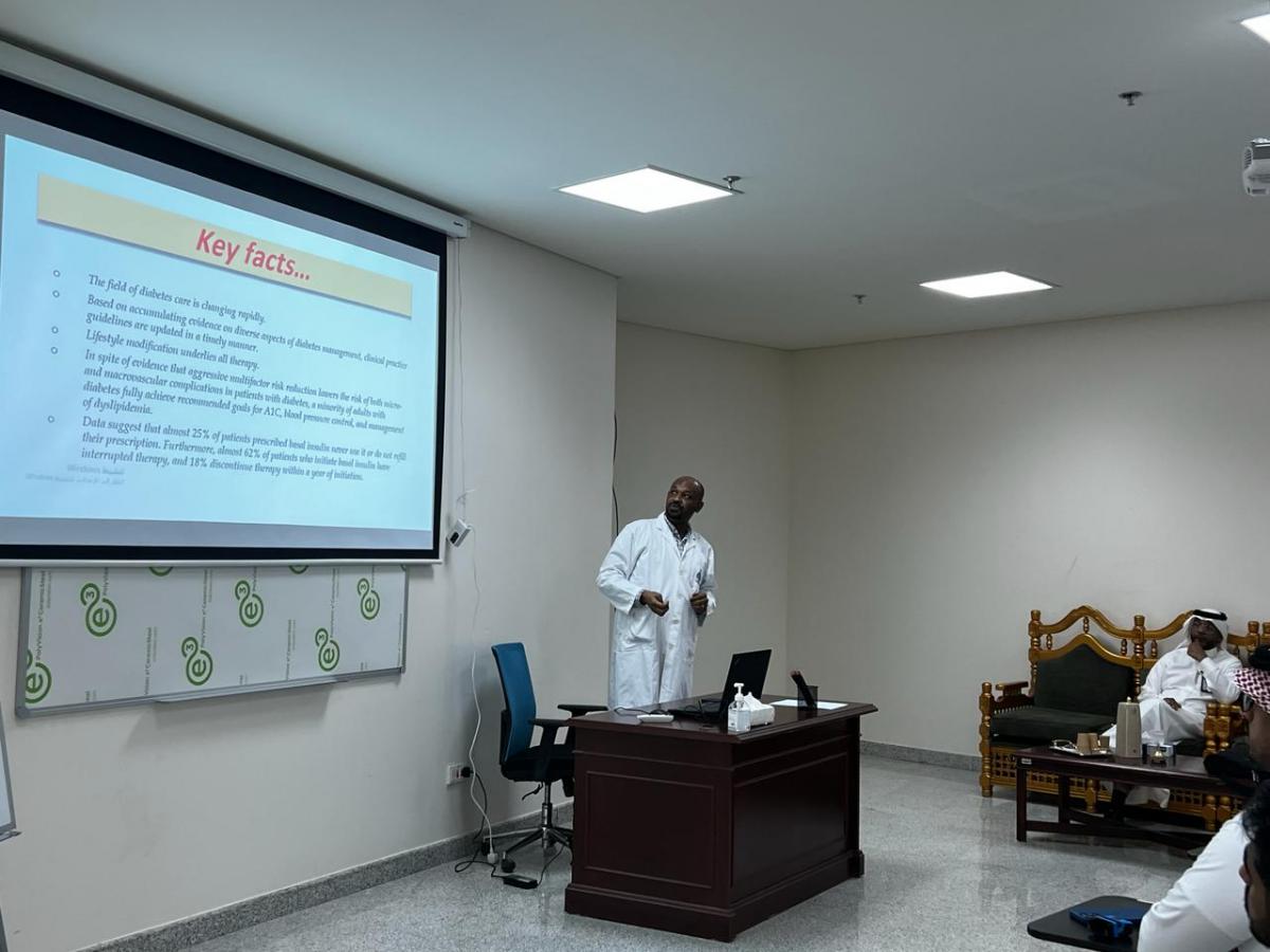 وذلك بقاعة التدريب بالإدارة الطبية بالمستشفى قدمها الدكتور اسامة البشير عضو هيئة التدريس واستشاري طب الأسرة بكلية الطب وحضرها عدد من الأطباء والفنيين من جميع الأقسام بالمستشفى.