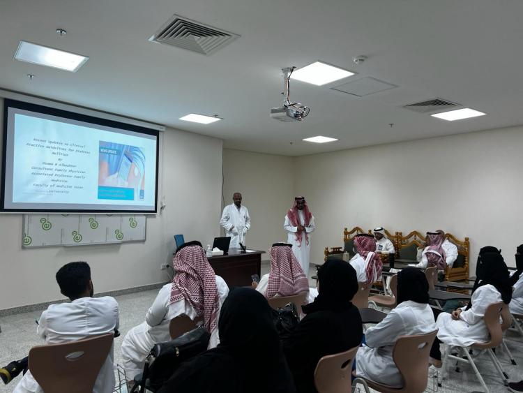 نفذ المستشفى الجامعي ممثلا في قسم طب الأسرة لقاءً عملياً بعنوان ( التحديثات الجديدة في علاج داء السكري - (Management Updates in Diabetes)