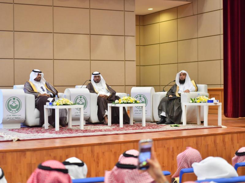 وقدم الندوة مدير مكتب تعليم أبوعريش الدكتور حسن بن أبكر الخضي مبيناً أهمية الندوة في تخليد الذكرى المجيدة في نفوسنا، والتي نستذكر فيها الملاحم البطولية، والتضحيات الكبيرة، والجهود العظيمة التي بذلها الأئمة المؤسسون -رحمهم الله- في سبيل تأسيس هذا الوطن المبارك.
