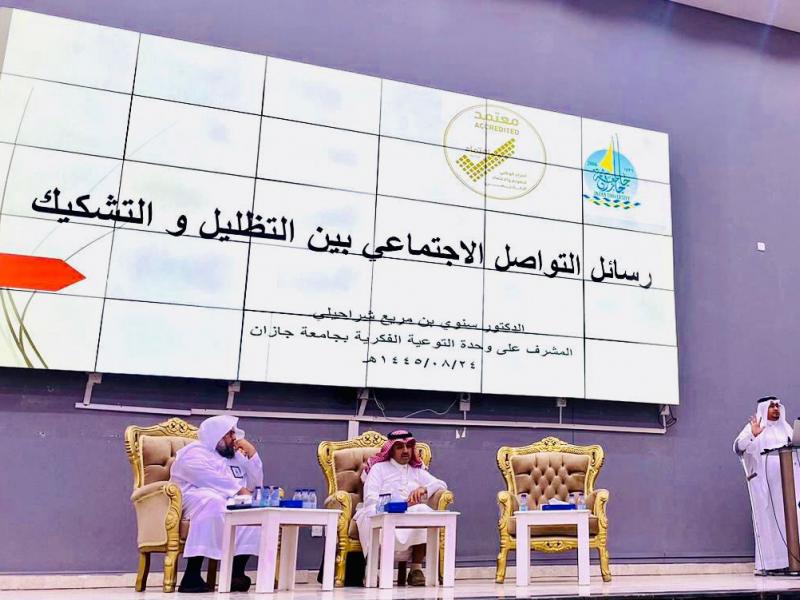 شارك المشرف على وحدة التوعية الفكرية بجامعة جازان الدكتور سنوي بن مريع شراحيلي في "ملتقى أولياء الأمور" الذي أقامته إدارة التعليم بمحافظة شرورة بمنطقة نجران بورقة عمل تحدث فيها عن رسائل وسائل التواصل الاجتماعي بين التظليل والتشكيك .