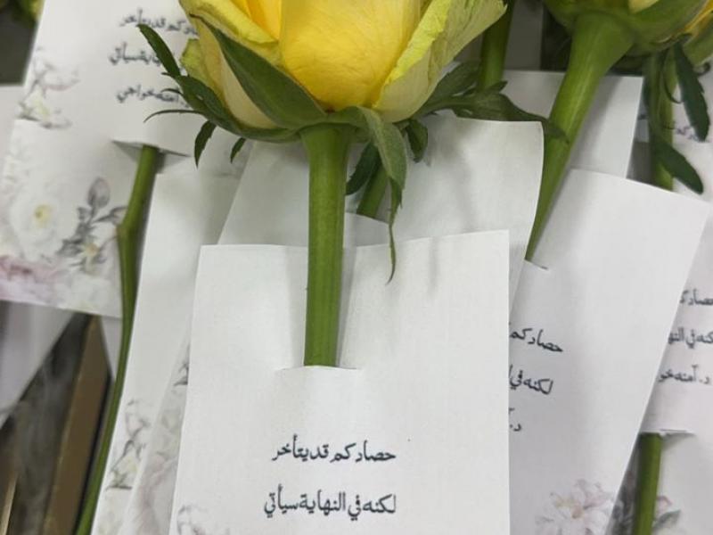 مبادرة توزيع الورد وسط أجواء من الطمأنينة والهدوء على جميع الطالبات