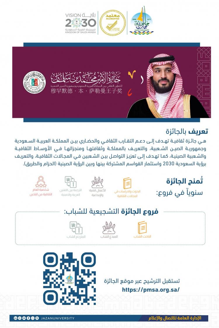 جامعة جازان تدعو منسوبيها للمشاركة في جائزة الأمير محمد بن سلمان للتعاون الثقافي مع الصين