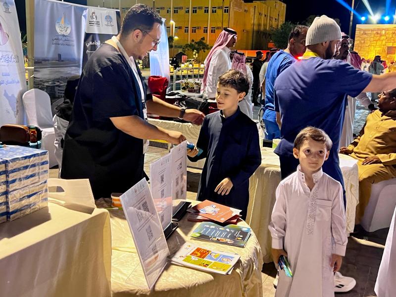 • مبادرات توعوية متنقلة من الكليات الصحية، تضمنت فحوصات أولية،توعوية بالإسعافات الأولية، والسلامة البحرية، بالإضافة إلى عربة متنقلة لفحص الأسنان.
