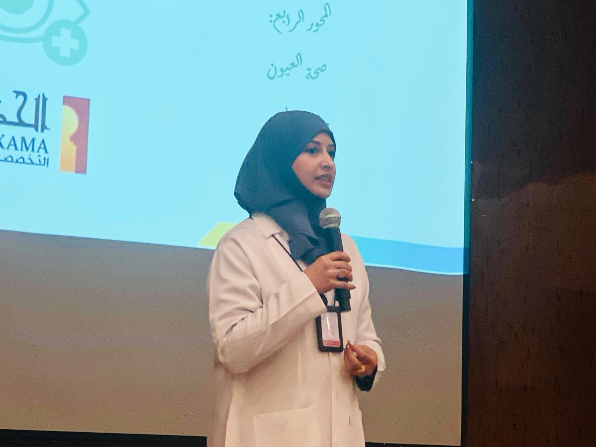 محور "صحة العين" قدمتها أ.الهام اليافعي اخصائية طب وجراحة العين من مركز الحكماء التخصصي للعيون، استعرضت المحاضرة خدمات مركز الحكماء لطب العيون بجيزان، وأكدت على أهمية العناية اليومية بالعين وعلاقتها بصحة الجسم. تطرقت إلى كيفية اختيار القطرات، الوقاية من الجفاف، والأمراض الناتجة عن الممارسات الخاطئة. كما ناقشت العناية بعد العمليات، واختُتم اللقاء بالإجابة على استفسارات الحضور.