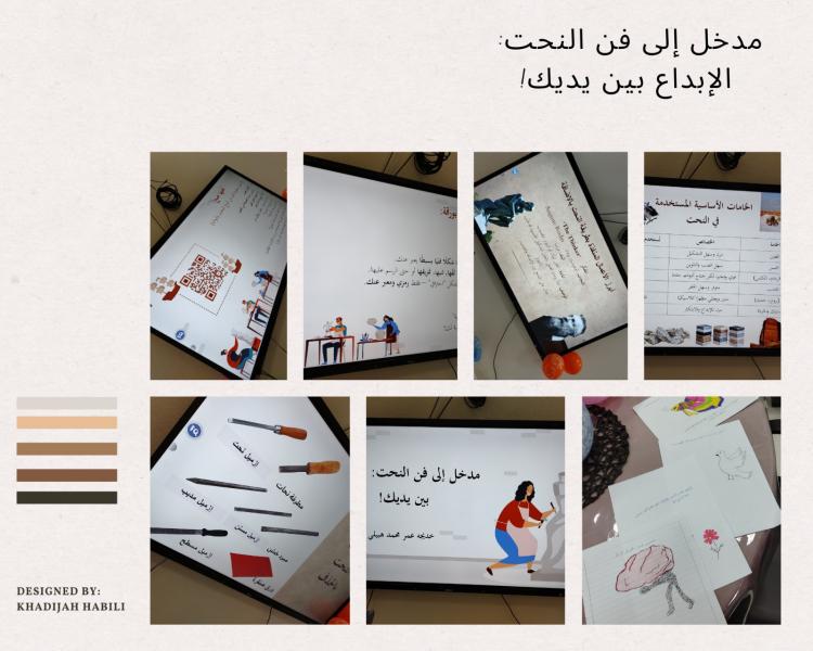 نظمت الكلية الجامعية بفرسان ممثلة في وحدة خدمة المجتمع برعاية عميدة الكلية الدكتورة عفاف محمد با بعير وإشراف وكيلة الكلية للشؤون الأكاديمية الدكتورة منال محمد الحازمي ورشة عمل بعنوان "مدخل إلى فن النحت: الإبداع بين يديك!" وشارك في الورشة عددا من طالبات الكلية وأعضاء هيئة التدريس من إعداد وتنفيذ الأستاذة خديجة عمر هبيلي عضوة في قسم اللغة الإنجليزية بالكلية ، حيث تناولت مفهوم النحت بأنواعه، والمواد المستخدمة فيه، مع تطبيقٍ عمليٍّ أتاح للمشاركات فرصة التعبير عن إبداعاتهن.