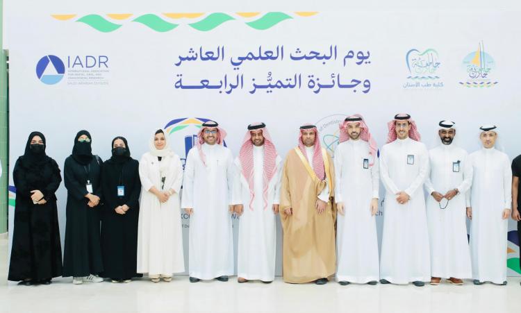 احتفت كلية طب الأسنان بجامعة جازان بيوم البحث العلمي العاشر وجائزة التميز الرابعة برعاية رئيس الجامعة الأستاذ الدكتور محمد حسن أبوراسين وبحضور وكيل الجامعة للدراسات العليا والبحث العلمي الدكتور عبدالكريم مريع ونخبة من عمداء ووكلاء الكليات.