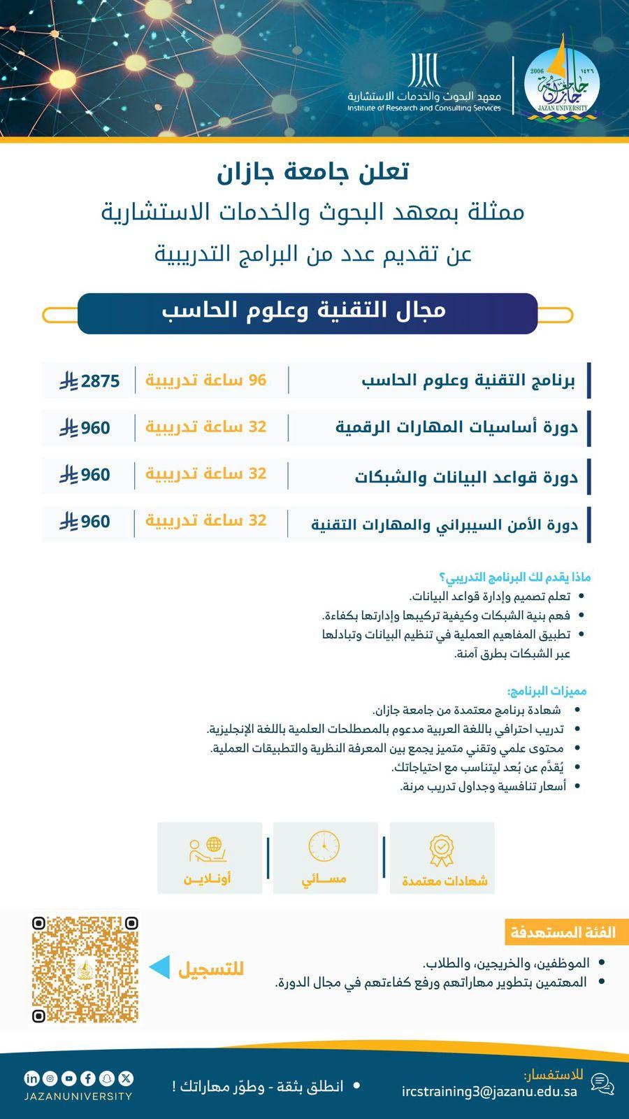 جامعة جازان تُطلق برامج تدريبية متخصصة في مجالي السلامة والصحة المهنية والتقنية وعلوم الحاسب