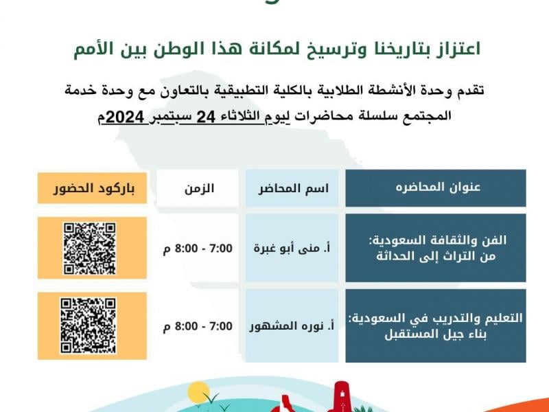 تحت شعار “نحلم ونحقق”، انطلقت احتفالات اليوم الوطني السعودي الـ 94 بالكلية التطبيقية ممثلة بوحدة الأنشطة الطلابية وسط أجواء مميزة وجميلة، بهذه المناسبة الوطنية الغالية، والتي تُجسد الفخر بتاريخ المملكة وإنجازاتها.