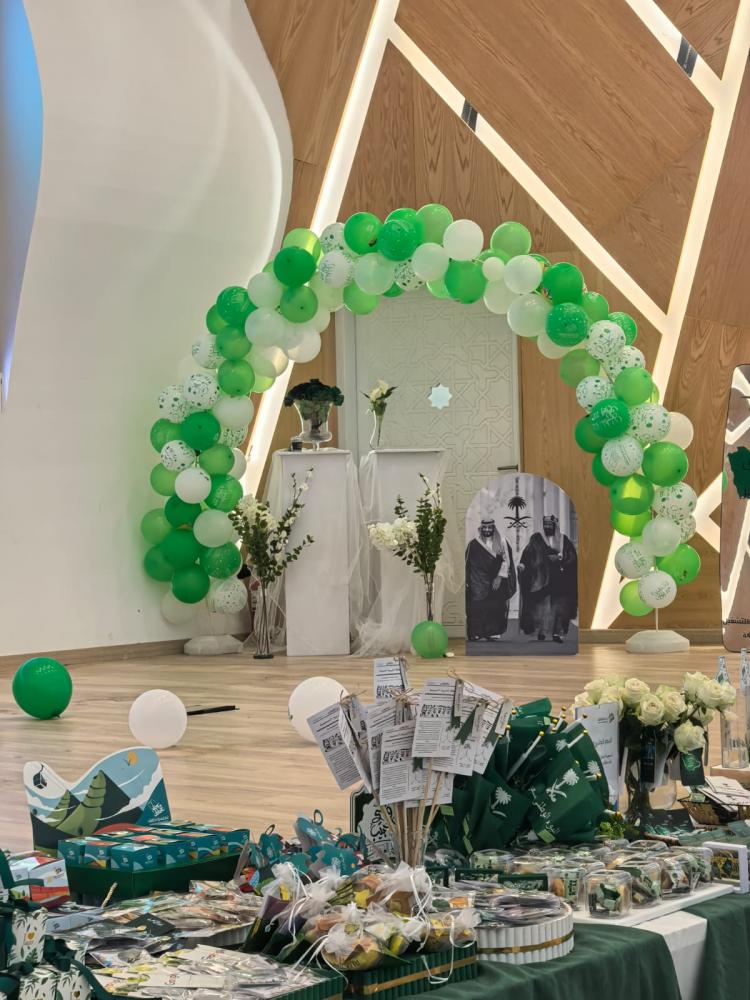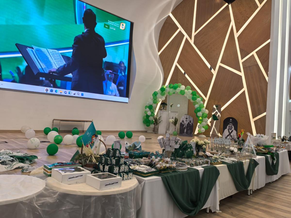 هذا وقد شهدت الاحتفالية عرض أوبريت وطني والعديد من المشاركات أبرزها المنشورات الوطنية وصور قادة ومؤسس المملكة والأعلام والهدايا والتوزيعات لضيوف الحفل والمنسوبات.