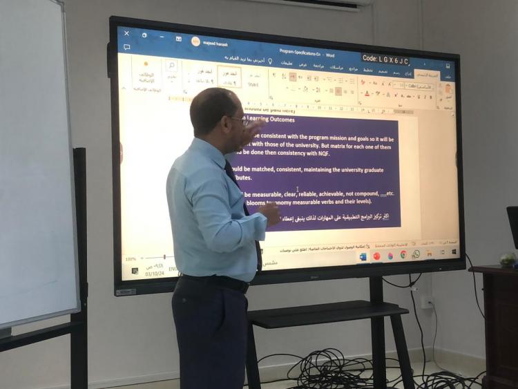 عمادة التطوير والجودة تقيم ورشة توصيفات البرنامج والمقررات