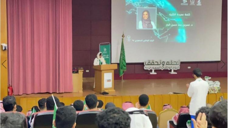 بدأت الفعاليات بالسلام الملكي ثم كلمة ألقتها عميدة الكلية الدكتورة نسرين البار، سلطت فيها الضوء على أهمية هذه المناسبة الوطنية وما تمثله من قيم الوحدة والانتماء، تلا ذلك مجموعة من الفقرات الفنية والثقافية، حيث قدم الطلاب عروضًا تعكس التراث والثقافة السعودية، كما تم تنظيم معرض للصور والرسومات يعبر عن تاريخ المملكة وإنجازاتها، مما أتاح للطلاب فرصة التعرف على معالم الوطن وتراثه الغني.