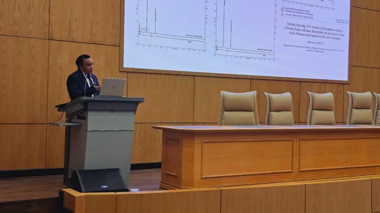 وتناول الدكتور ضياء الرحمن في شرحه دور تقنية الكروماتوغرافيا السائلة عالية الأداء في تحليل المركبات الدوائية بدقة عالية، مما يعزز من تسريع عملية تطوير الأدوية الجديدة، وأبرز أحدث التطورات وتطبيقاتها في البحوث الدوائية.