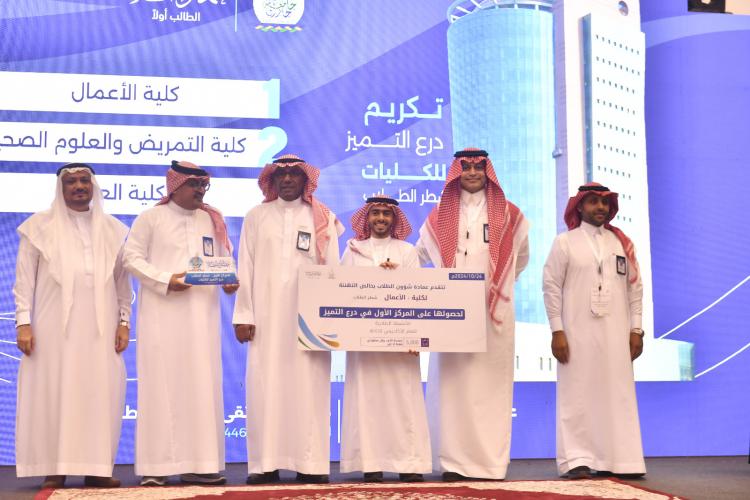 بعد ذلك بدأ الحفل الخطابي للملتقى الذي تضمن عرضًا مرئيًا لأبرز الأنشطة الطلابية المقامة خلال العام الجامعي 1445، والإنجازات التي حققها طلبة الجامعة من خلال المشاركات الداخلية والخارجية، وما تم تنفيذه من فعاليات، كما كرم سعادة رئيس الجامعة الأستاذ الدكتور محمد بن حسن أبوراسين الفائزين بجوائز الأنشطة الطلابية للعام 1445هـ.