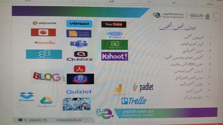 وهدفت الدورة لإلقاء الضوء على استراتيجية الفصل المقلوب وأهميتها في إثراء العملية التعليمية موضحة أدوات وتقنيات استخدام الفصل المقلوب والأسس والمعايير التي يقوم عليها وإيجابيات وسلبيات استخدامه.