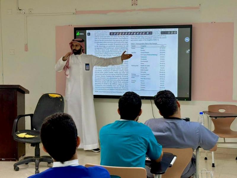 نفذت وحدة الأنشطة الطلابية اللقاء الثامن من سلسلة "Journal Club" حيث استضافت الدكتور أحمد القحطاني والذي قدم لقاء حول "مضاعفات الإشعاع الفموية والسنية لسرطان الرأس والعنق"