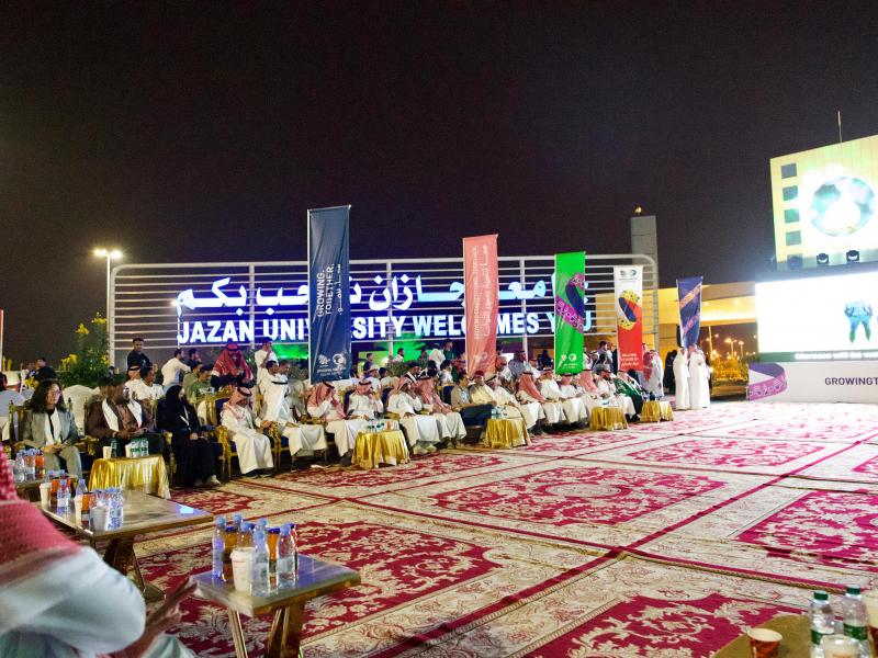 رفع سعادة رئيس جامعة جازان الأستاذ الدكتور محمد بن حسن أبوراسين أسمى آيات التهاني والتبريكات لمقام خادم الحرمين الشريفين الملك سلمان بن عبدالعزيز وولي العهد رئيس مجلس الوزراء الأمير محمد بن سلمان "حفظهما الله" بمناسبة إعلان استضافة المملكة لكأس العالم 2034م .