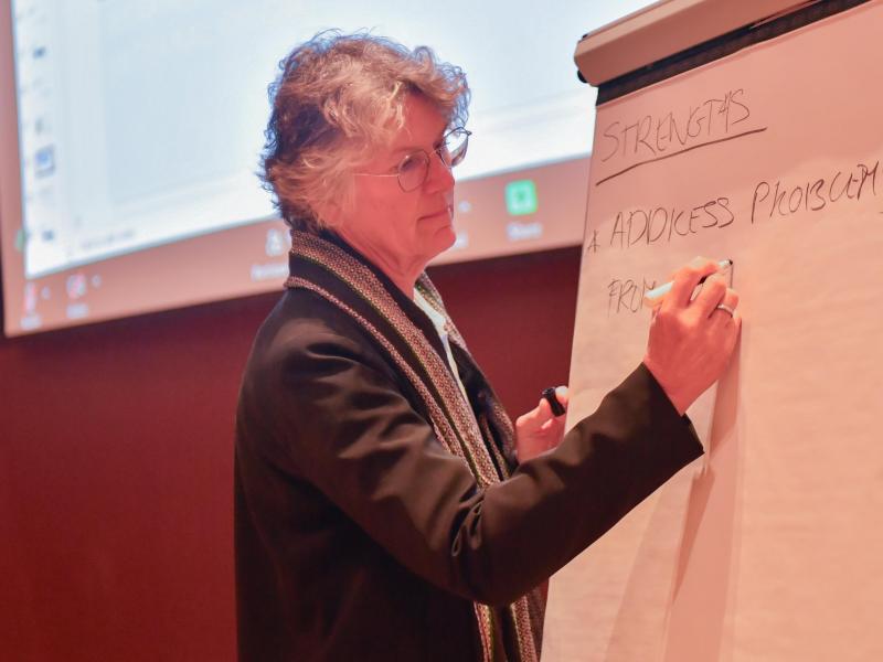 أما ورشة العمل الثانية فتم النقاش فيها حول برنامج التعليم والممارسة التعاونية بين المهن الاستراتيجية والتنفيذ قدمها الأستاذ الدكتور محمد بن يحيى النعمي أستاذ الجراحة وزميل المعهد الدولي للقيادة في التعليم الصحي بين المهن بكلية الطب بجامعة الملك سعود.