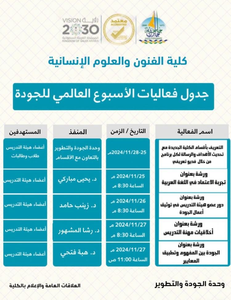 كلية الفنون والعلوم الإنسانية تفعل الأسبوع العالمي للجودة