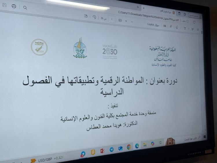 ورشة المواطنة الرقمية في الفصول الدراسية بكلية الفنون والعلوم الإنسانية