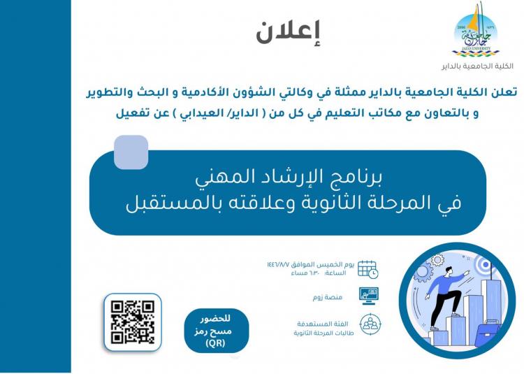 برنامج الإرشاد المهني في المرحلة الثانوية وعلاقته بالمستقبل في الكلية الجامعية بالداير