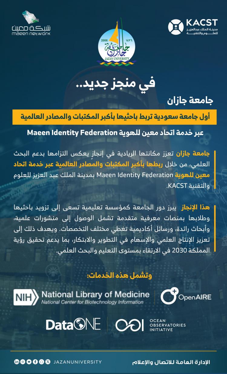 جامعة جازان.. أول جامعة سعودية تربط باحثيها بالمصادر العالمية عبر خدمة “اتحاد معين للهوية”