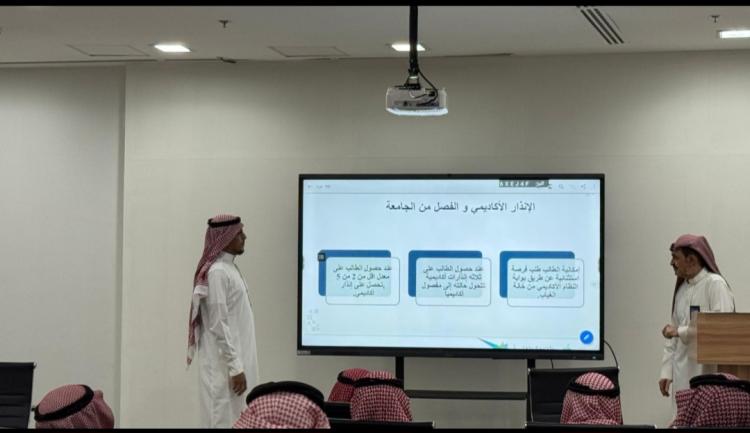 وهدفت الدورة إلى تعريف الطلاب المستجدين بالأنظمة واللوائح الجامعية، وآلية الإنذارات الأكاديمية والفصل من الجامعة، إضافةً إلى توضيح الفرص الأكاديمية المتاحة للطلاب لتعزيز مسيرتهم التعليمية.
