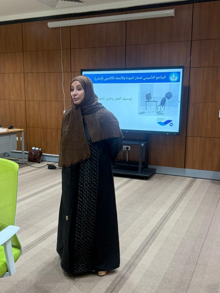 نظّمت عمادة التطوير والجودة الورشة الثانية من البرنامج التأسيسي لضمان الجودة والاعتماد الأكاديمي (أساس 2)، تحت عنوان: "توصيف المقرر والبرنامج وتقرير المقرر"، قدّمتها الدكتورة الخنساء الشعبي مستشار ضمان الجودة.