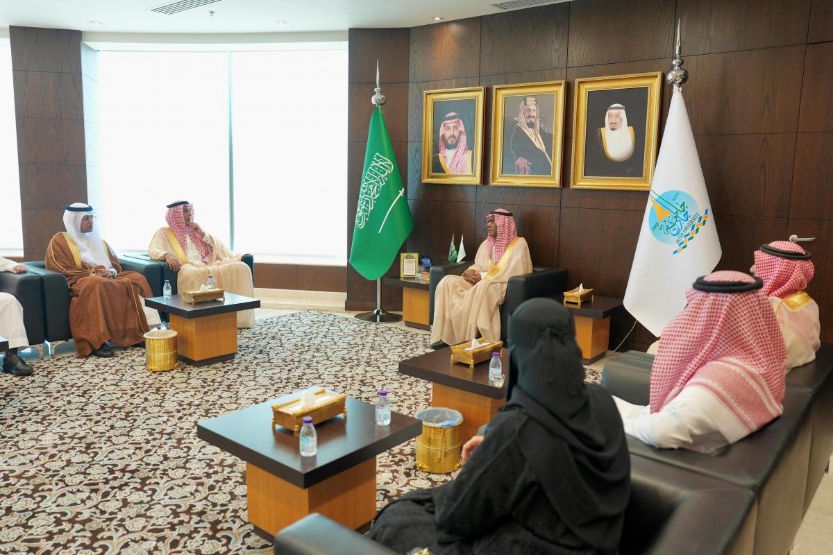 استقبل سعادة رئيس جامعة جازان، الأستاذ الدكتور محمد بن حسن أبوراسين، صباح اليوم، في مكتبه بالبرج الإداري بالمدينة الجامعية، الرئيس التنفيذي لصندوق التنمية الزراعية، الأستاذ منير بن فهد السهلي، والوفد المرافق له، حيث تأتي هذه الزيارة في إطار سعي الطرفين لتعزيز سبل التعاون المشترك في مجالات البحث والتطوير الزراعي، بما يخدم القطاع الزراعي في المنطقة.