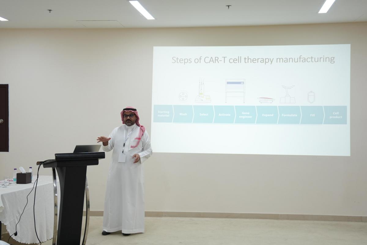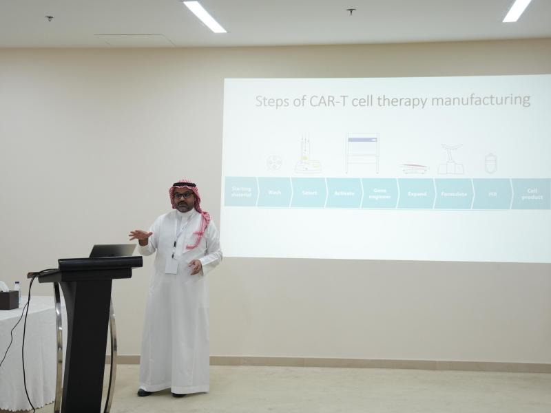 الجلسة الأولى جاءت بعنوان "علاج CAR-T: من المختبر إلى المريض"، قدمها الدكتور مانع الشهري من هيئة الغذاء والدواء، حيث تحدث عن علاج CAR-T كأحد العلاجات المناعية الحديثة والواعدة في مكافحة السرطان، مستعرضًا التجربة السعودية في هذا المجال، والتي تُعد من التجارب الرائدة والواعدة في المنطقة.